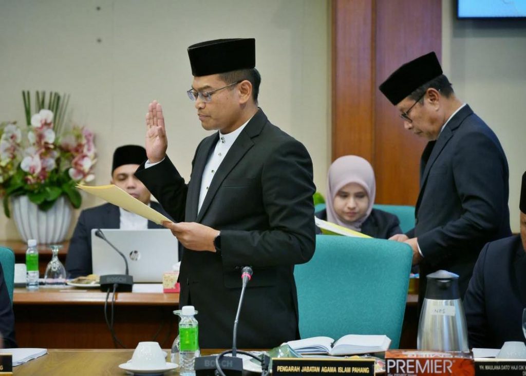 Kebawah Duli Paduka Baginda turut menyaksikan upacara mengangkat sumpah dua Ahli Majlis yang baharu, iaitu YH. Dato’ Haji Ahmad Khirrizal bin Haji Ab Rahman, Pengarah Jabatan Agama Islam Pahang (JAIP) dan YH. Dato’ Haji Cik Wan Hilmy bin Wan Mohamed.